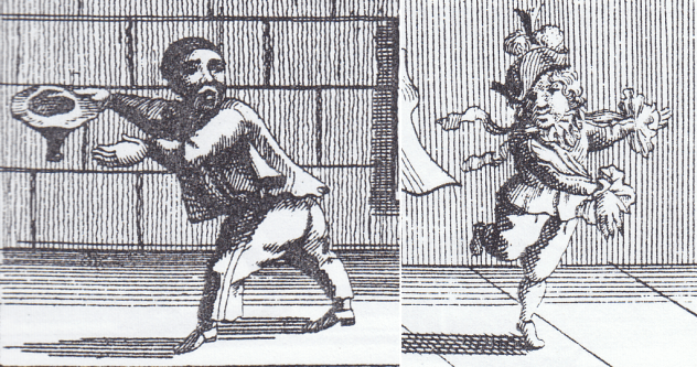 Fig. 4. Dancing dwarfs in poses, engravings by Johann Georg Puschner (Lambranzi 1716: 2/36, 47).