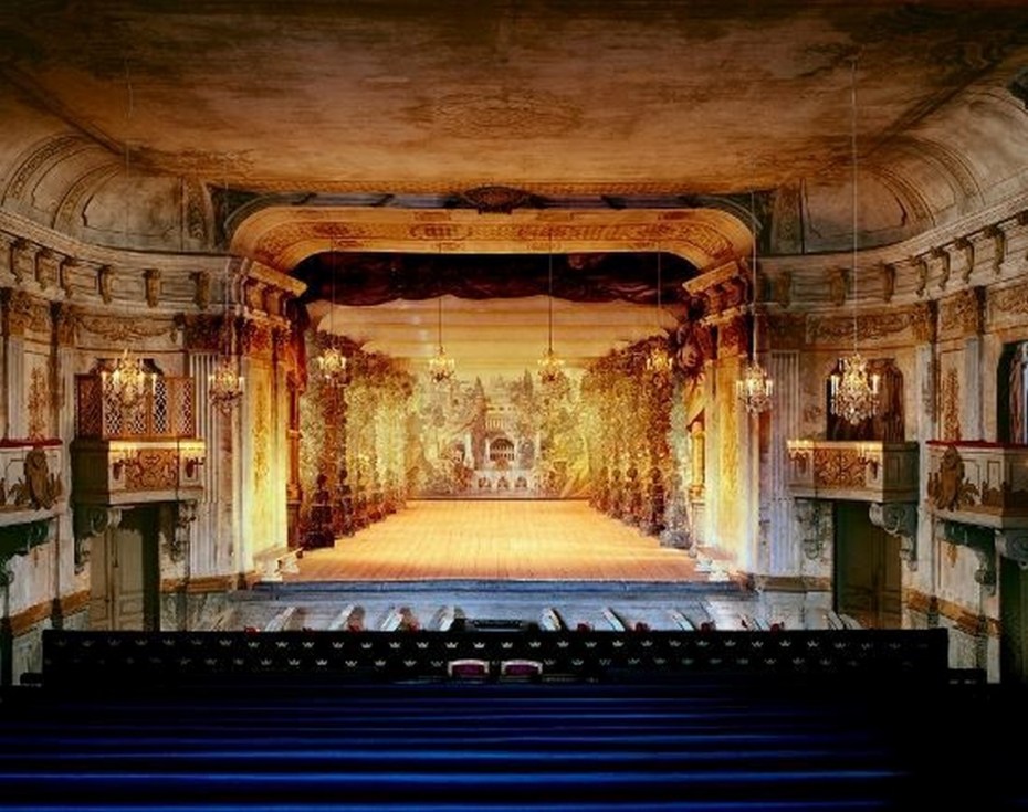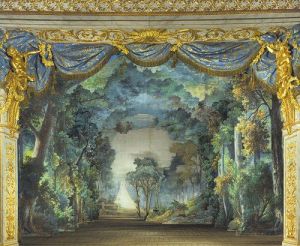 A set from the Drottningholm palace theater in Sweden showing an outdoor scene.