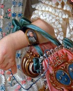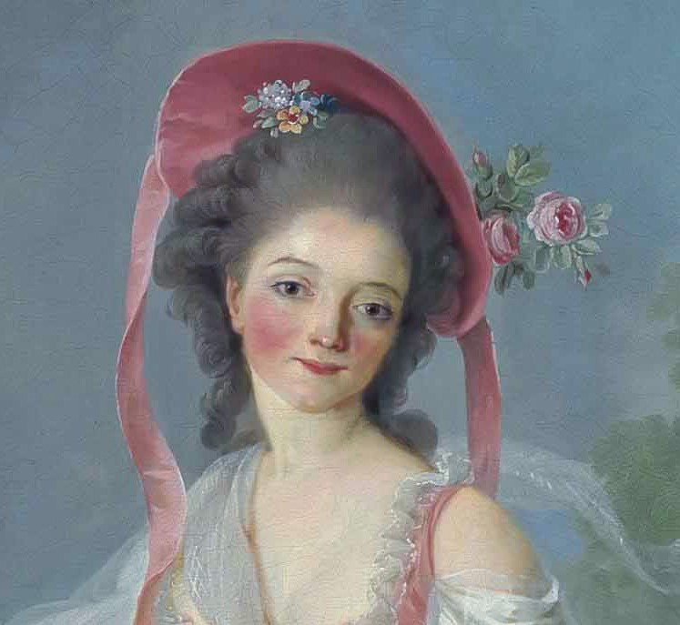 A detail from Jacques-Louis David’s 1773-74 portrait of Maire-Madeleine Guimard; she usually played the role of Ninette at the Opéra.