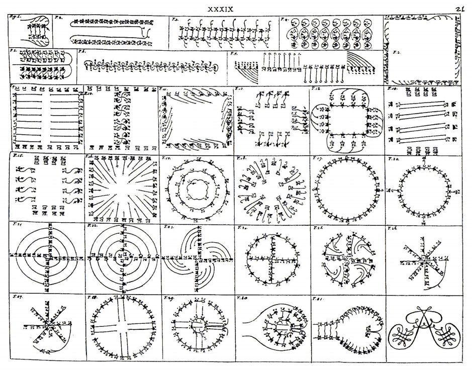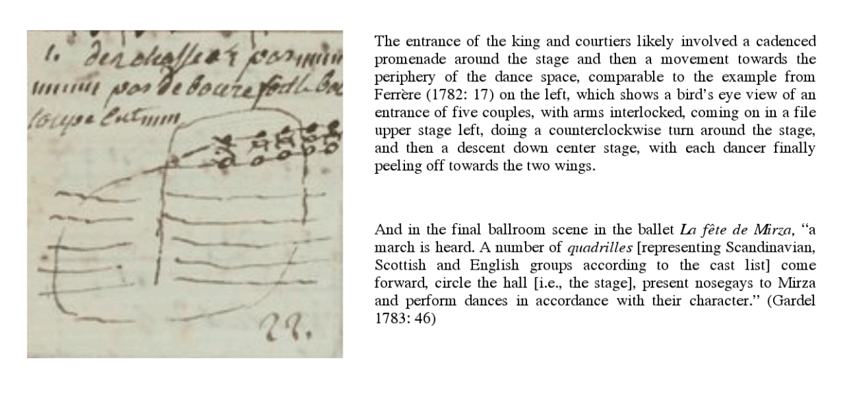 A bird’s eye view of a sequence of figures from a complex ballroom contredanse by Magri (1779). Theatrical contredanses were expected to make imaginative use of interesting patterns.