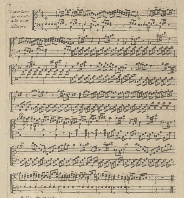 The second volume in Noferi’s collection of pieces associated with the 1781 London production of Ninette à la cour may contain a few of the “improvements” that G. Vestris is said to have introduced midway through the run. Possible candidates are the following (Noferi’s keyboard arrangements):