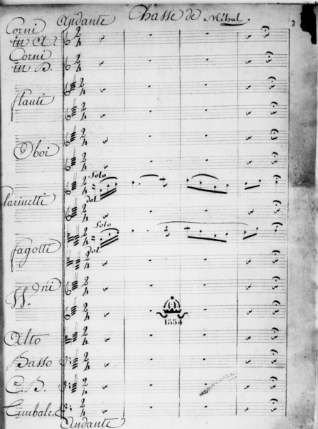 The first page of Méhul’s hunt music in the Paris Ninette manuscript.