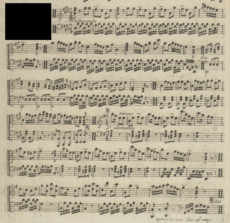 Benaut’s keyboard arrangement of the contredanse générale (1781).