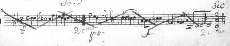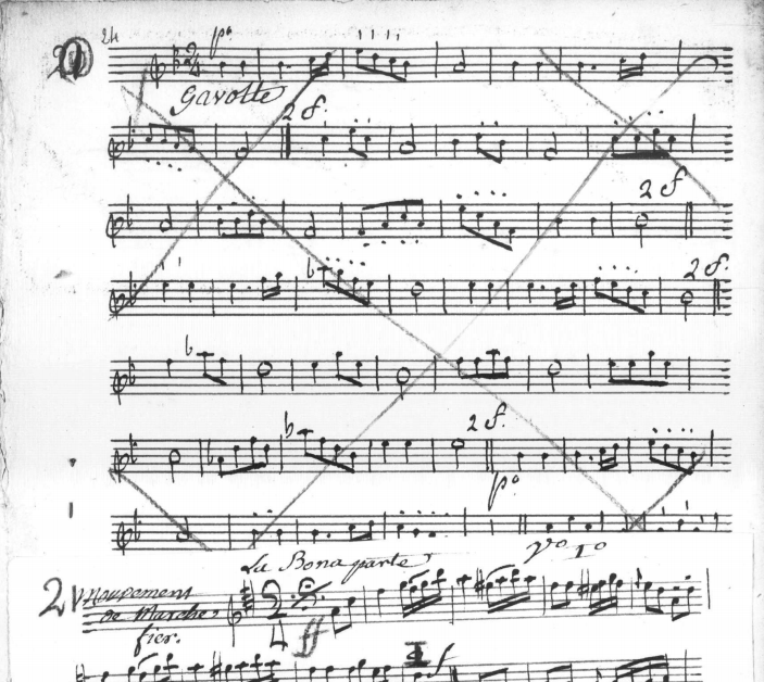 Alterations to the part books suggest that Pierre Gardel had initially intended to use the fourth movement from Gossec’s Symphony in D major “La Caccia” of 1776 but then rejected this piece in favor of Méhul’s. To hear a recording of this work, follow the Youtube link (starting at 15:17):