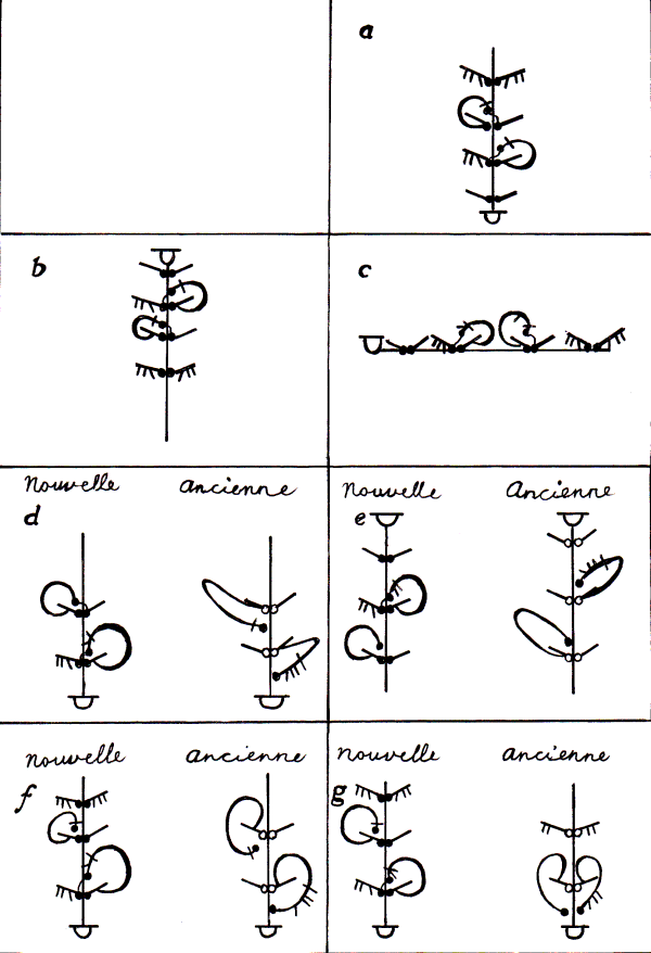 The pas de rigaudon is a step that is done on the spot, and since you must be in first position to do it, and as it thus resembles the assemblé, I felt obliged to place it at the end of this table [a-c in fig. 3]. . . .