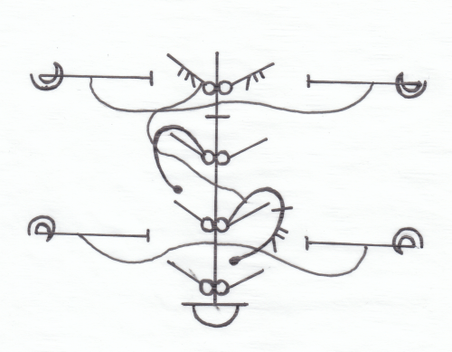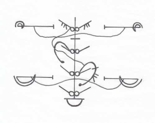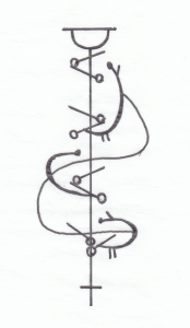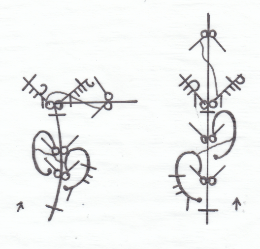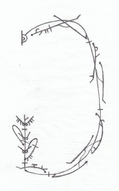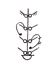 Fig. 19. Likely appearance in Beauchamps notation of the port de bras prescribed by Rameau (1725a) and Ferriol (1745) for the pas de rigaudon.