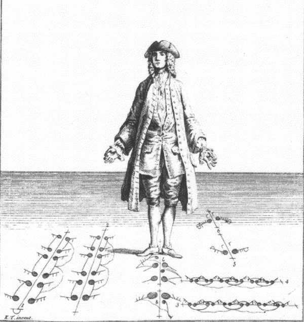 [Magny’s translation of Feuillet (1701) presents a re-drawing of fig. 1a-b, which is not included here to avoid needless repetition.]
