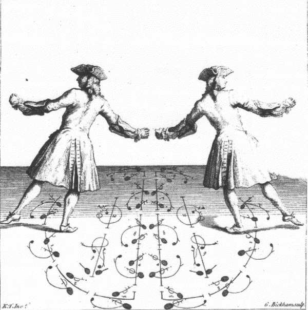 Fig. 4. The pas de rigaudon, after an original in Dufort (1728).