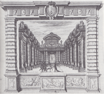 Fig. 2. Copy of a view of the stage from Les nopces de Pélée et de Thétis of 1654, reproduced in Kirstein (1984: 81).